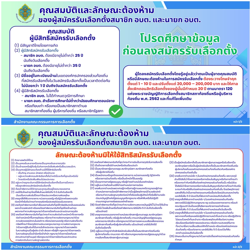 คุณสมบัติและลักษณะต้องห้ามของผู้สมัครรับเลือกตั้งสมาชิก อบต.และ นายกอบต.